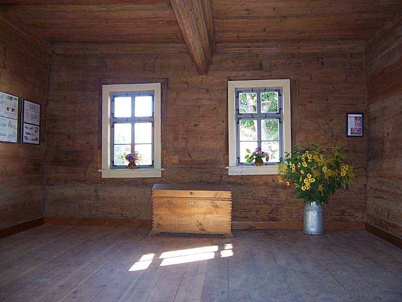 Das aufwendig gestaltetes Interieur der Stube bildet einen deutlichen Gegensatz zu den unverputzten fachwerk- oder stampflehmsichtigen und meist sichtbar geschwärzten Wänden und Decken der anderen Räume.