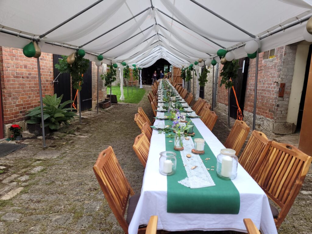 Der Hof eignet sich für Geburtstage, Jubiläen, Kindstaufen, Konfirmationsfeiern und Jugendweihen ebenso, wie für Betriebsfeiern, Vereinssitzungen und mehr. Bitte beachten Sie, dass wir eine Kapazitätsgrenze von ca. 40 Personen haben.
