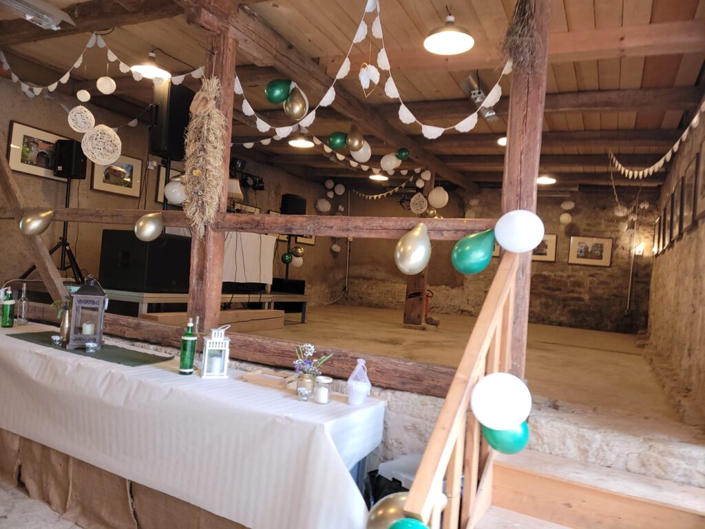 - 4 Räume unterschiedlicher Größe mit insgesamt bis zu 40 Sitzplätzen, dezentral im Wohnstallhaus und im Jungtierstall, im Bansen finden ebenfalls maximal 40 Personen Platz. Außerdem ist bei schönem Wetter immer ein Feiern im Garten möglich (siehe Fotos).